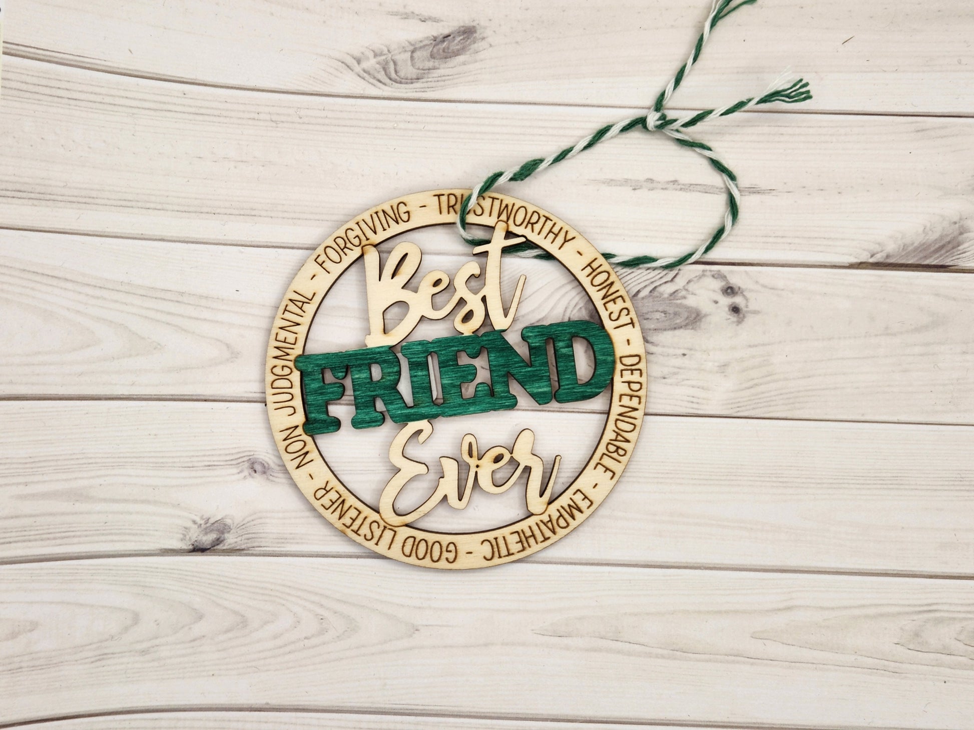 Show your best friend how much they mean to you with this heartwarming Best Friend Ever Christmas ornament. Perfect for holiday gifting or adding a personal touch to your tree, this ornament celebrates the qualities that make your friendship special. Color of the word Friend may vary.