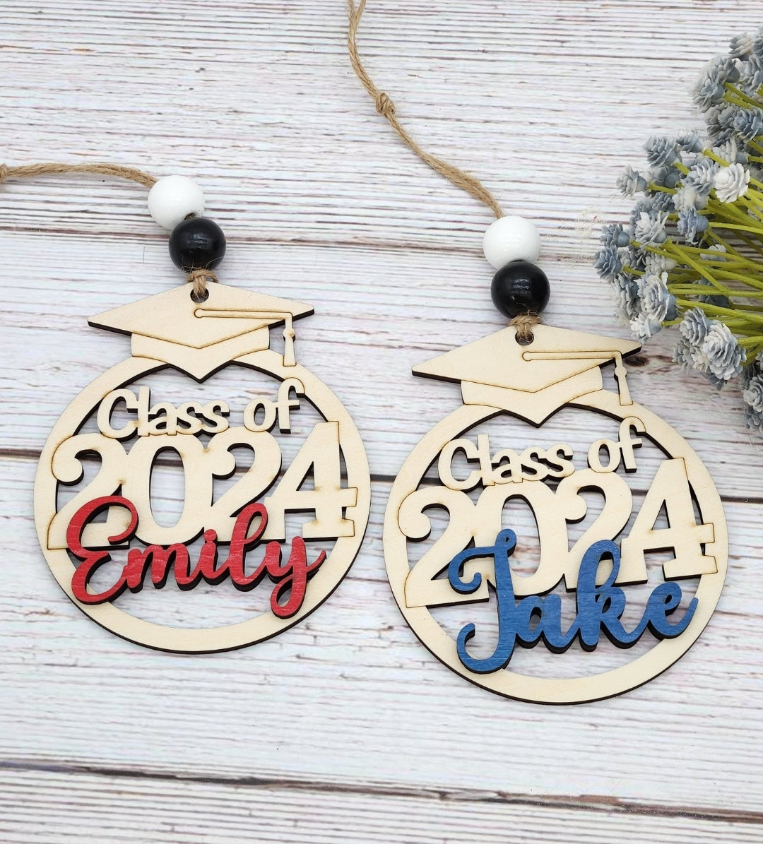 Grad Ornament, Class of 2025, Custom Name Tag, Senior Gift, Graduation Keepsake, Wooden Ornament, Personalized Grad Gift