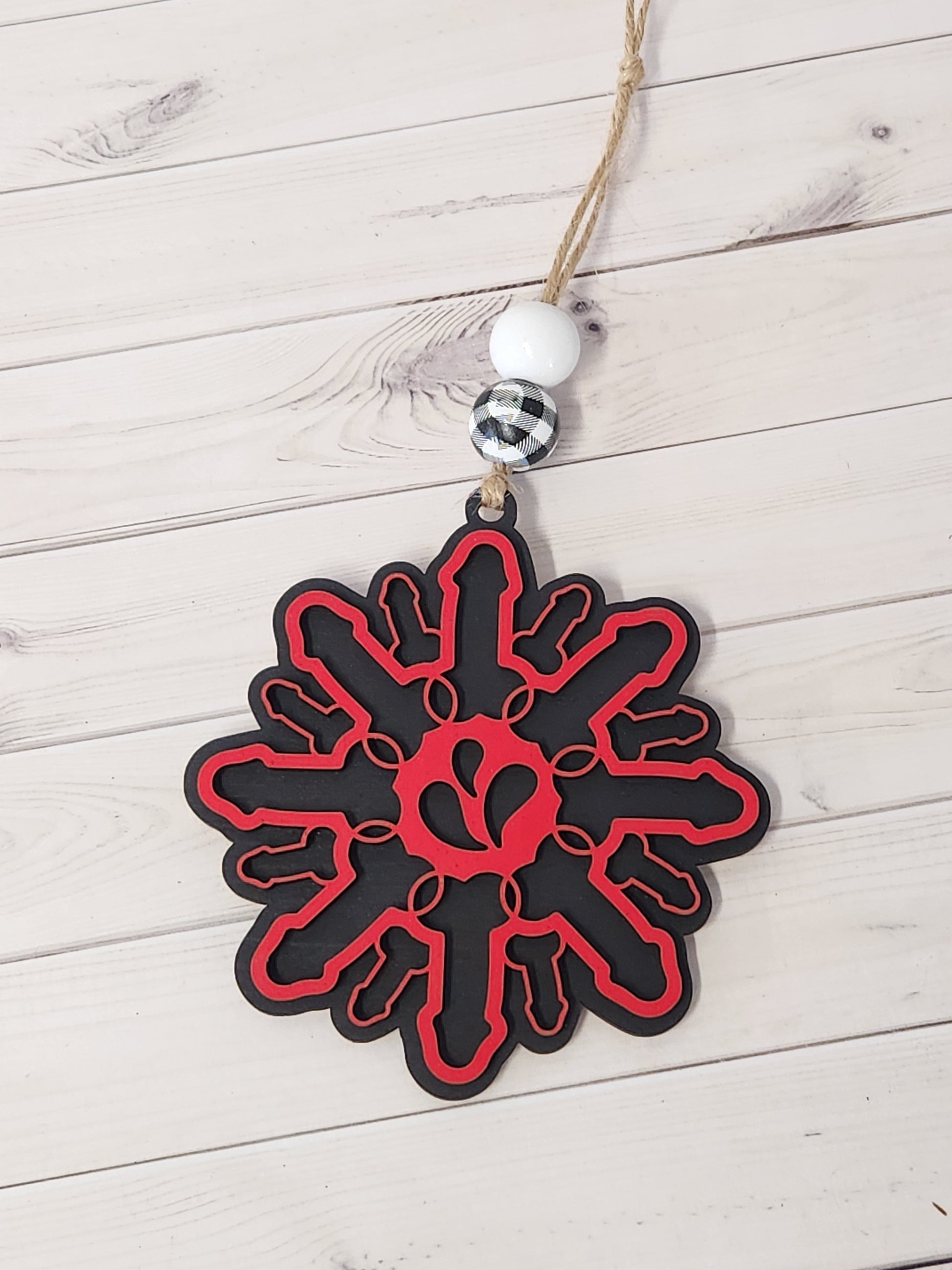 D Flake measures 3.5. Two layers comes with beads and string.