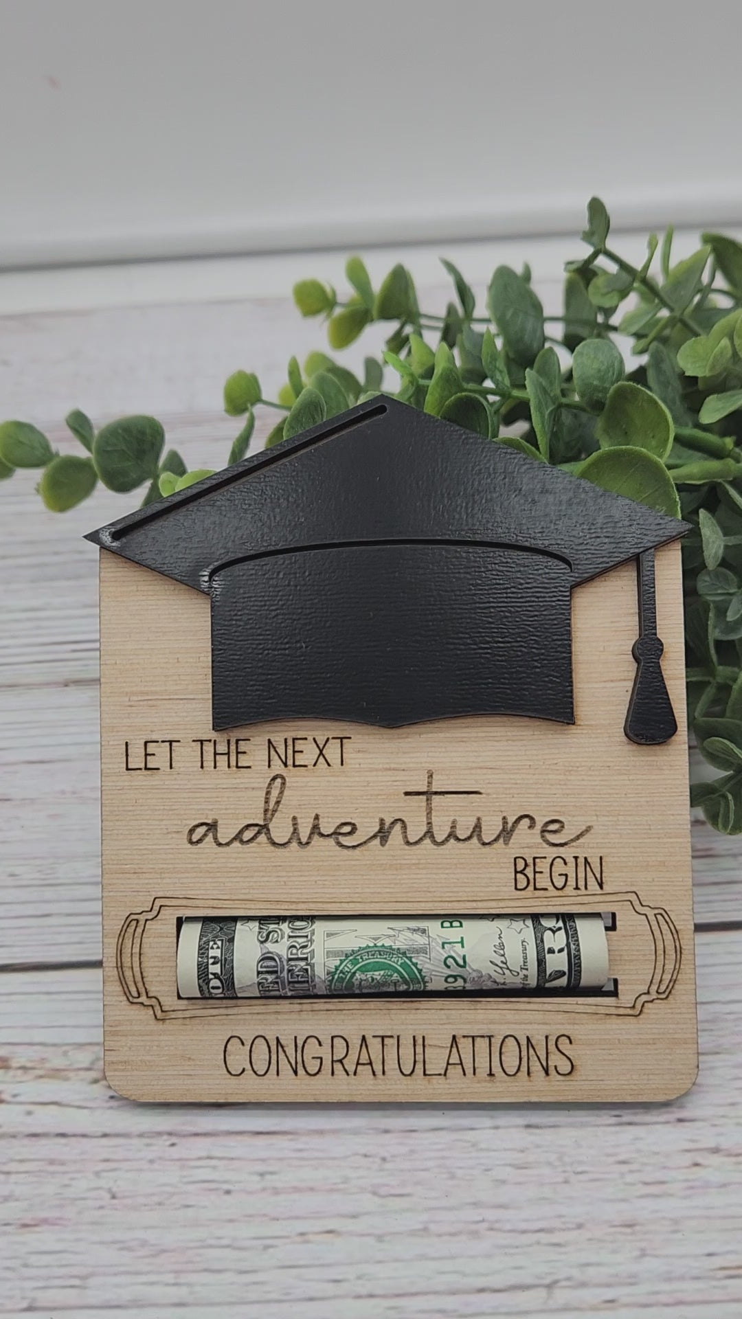 Graduation Gift, Money Holder, Adventure Begins, Grad Congrats, 2025 Senior Gift, Custom Graduation Idea, Wooden Grad Card