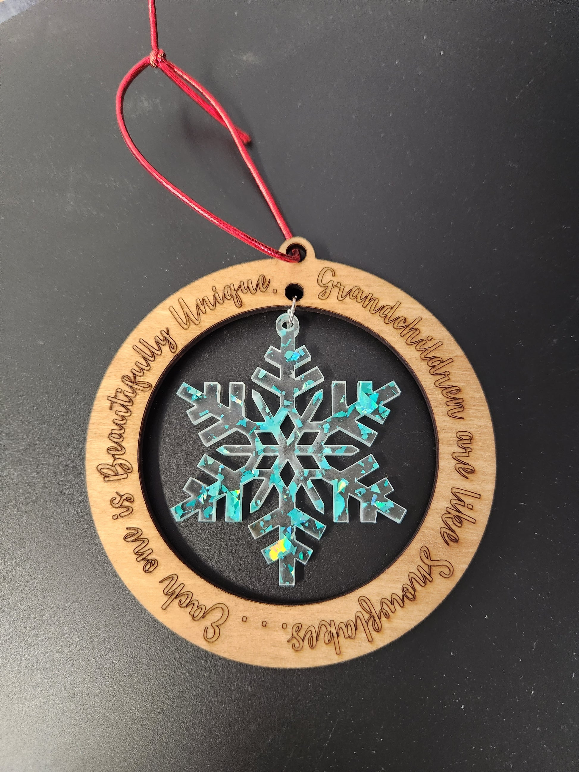 Grandchildren are like snowflakes ornament Measures 3.75. Wood and acrylic material.