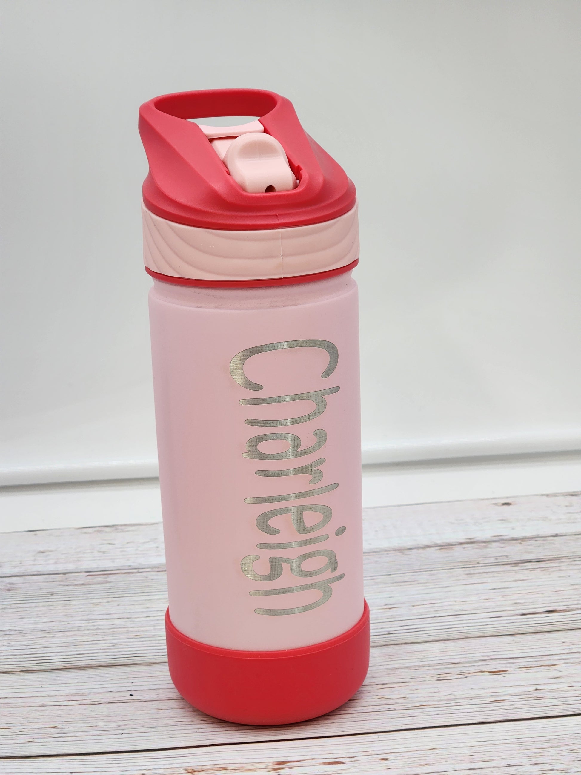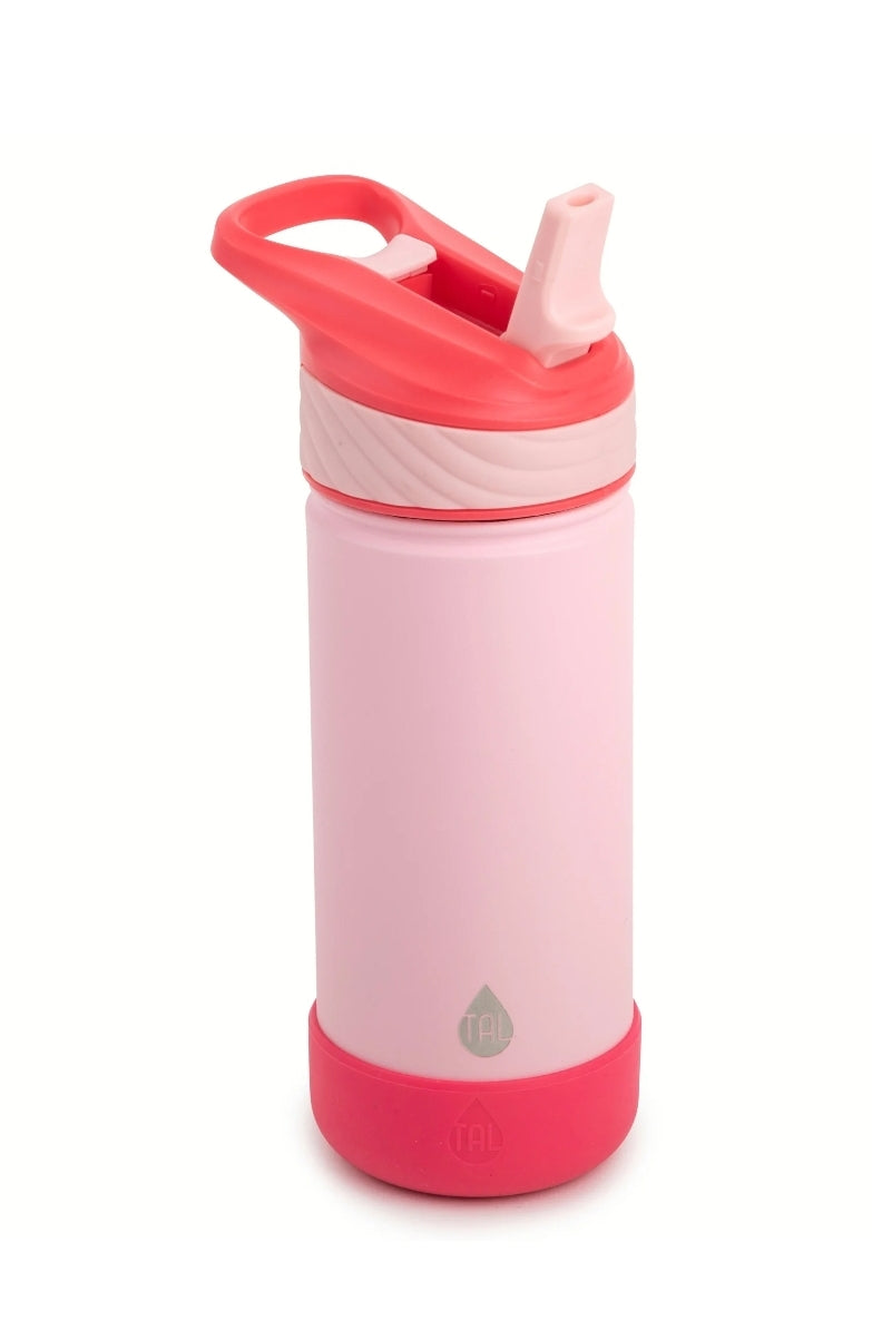 Keep your child hydrated with this stylish and functional TAL insulated water bottle. Designed with a convenient flip-top straw and a durable handle, this bottle is perfect for school, sports, or any outdoor adventure. The design is both fun and practical, making it easy to spot in a busy backpack. Customize with your child's name. Available in Black, Pink & Blue.