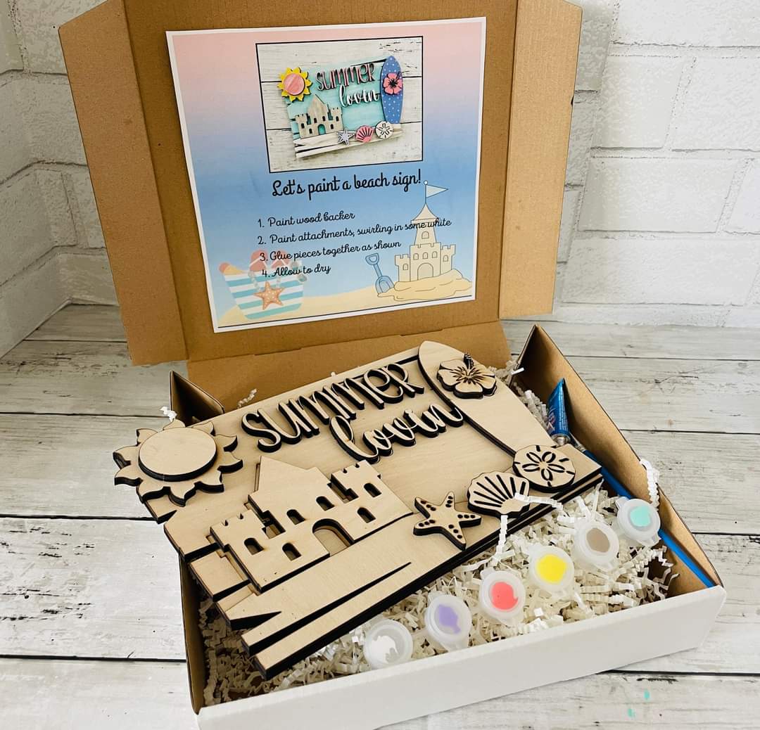 Each month a new DIY kit will be available that is a great project for those that love to paint or a girls night together to create. Each kit comes with all materials needed: Wood cutouts, paint, glue, paint brushes and instructions. If buying in bulk, please reach out for bulk pricing.