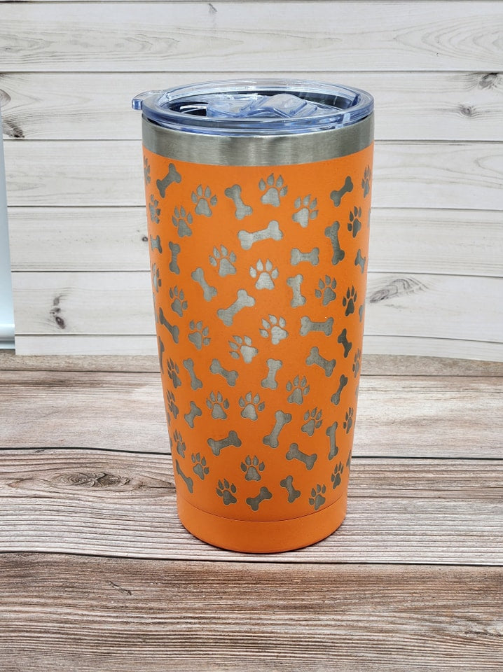 Delight in the joy of furry friends with each sip from this vibrant, paw-print adorned tumbler. A treasure for pet lovers and enthusiasts alike, it's not just a drink holder—it's a statement of your love for animals. The bright hue ensures it stands out from the crowd, while the playful paw print pattern wraps around with charm and whimsy. Keep your favorite hot or cold beverage at the perfect temperature as you go about your day, whether it's a walk in the park or a commute to work. It's the purr-fect companion for any adventure.