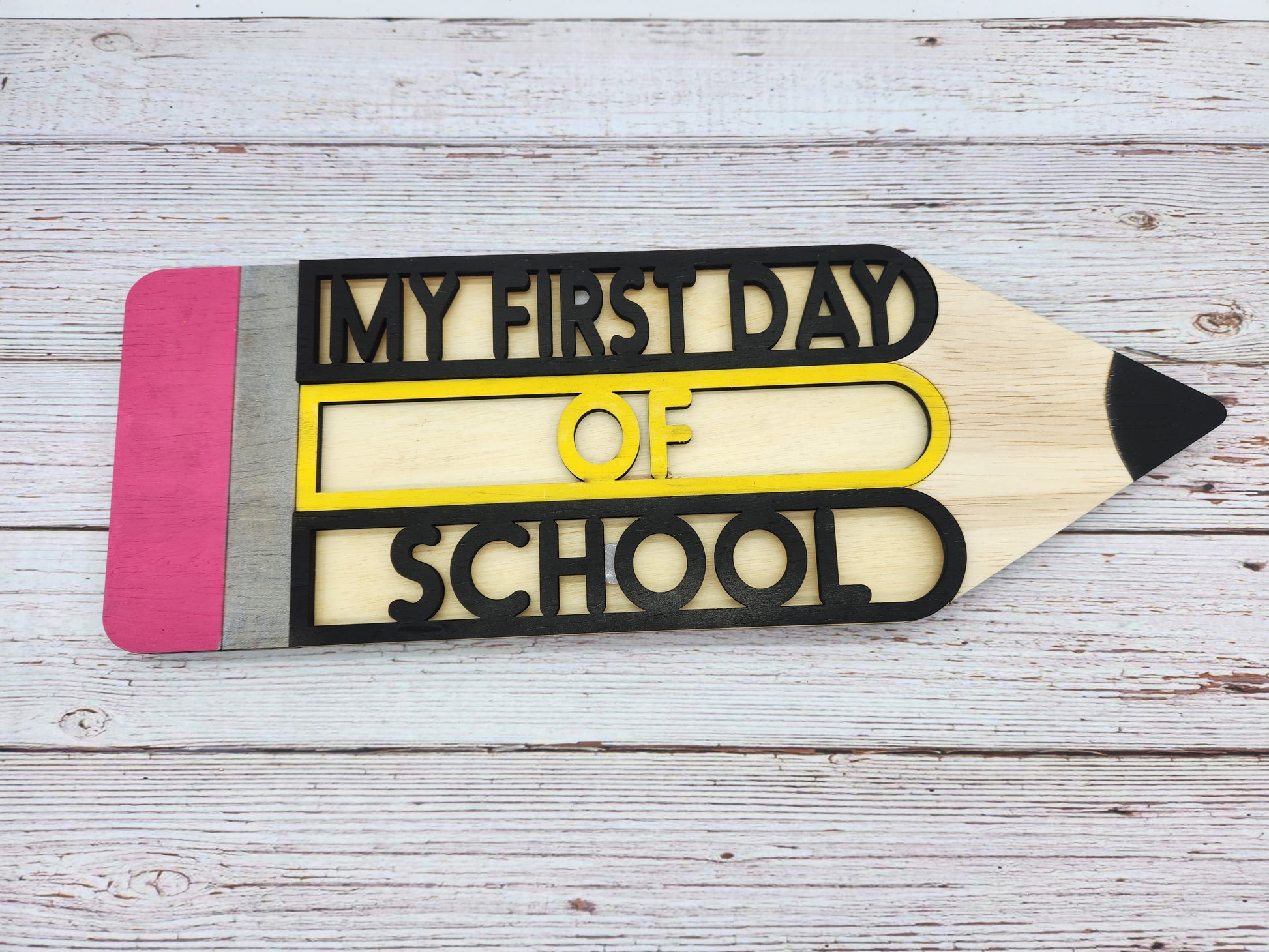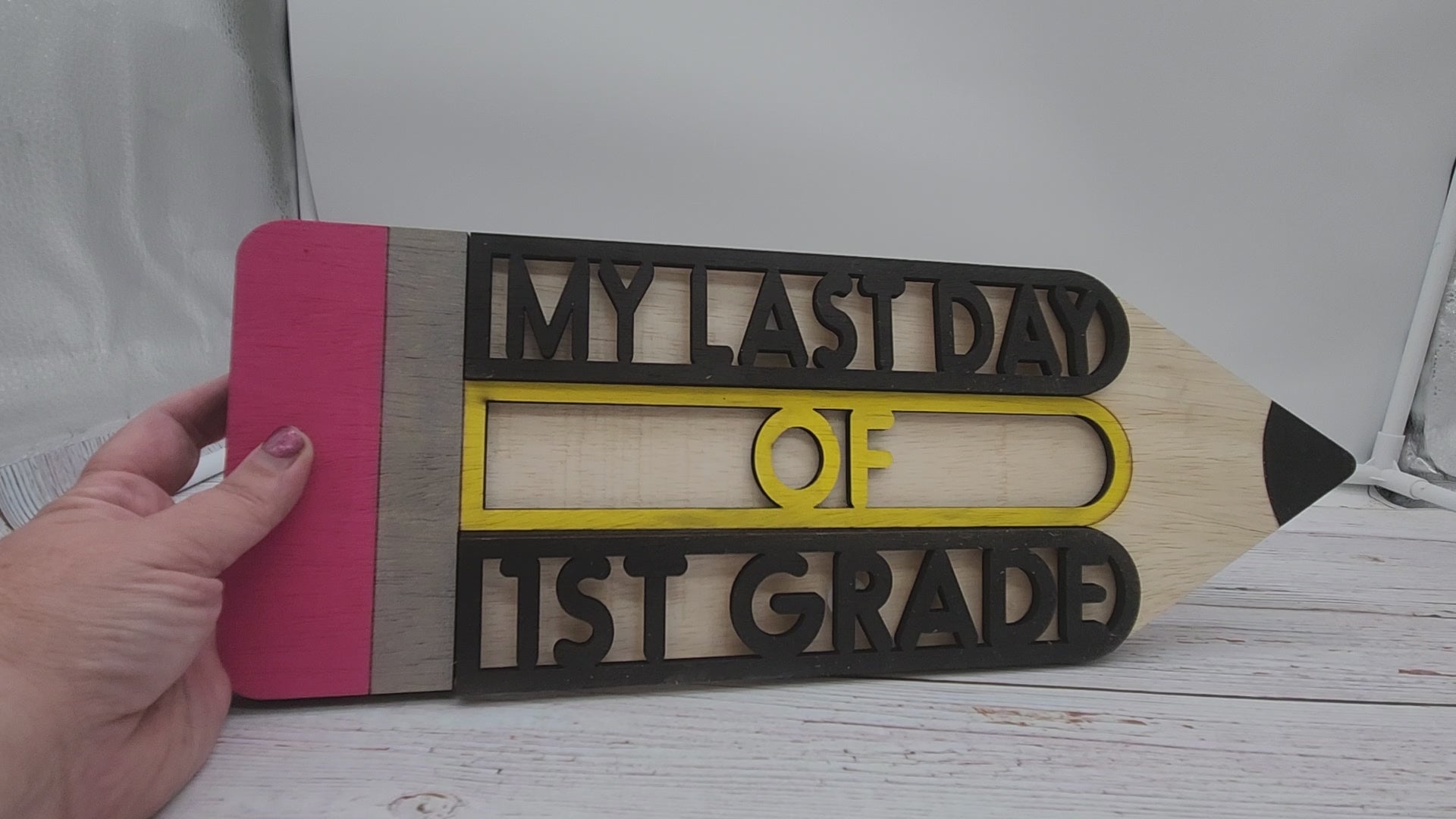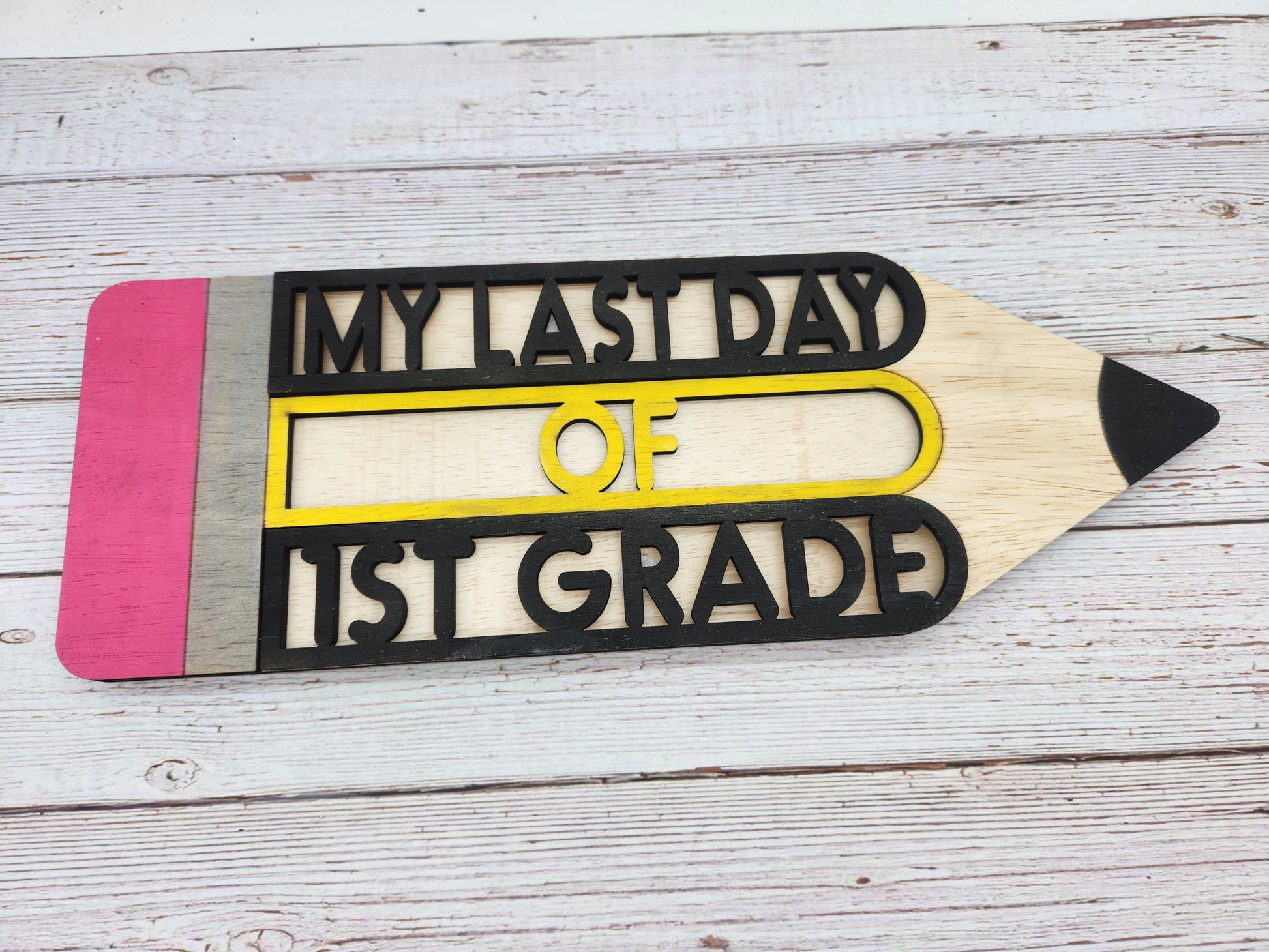 Reversible School sign. Inserts interchangeable. Double sided. Measures approximately 18x8. Each sign comes with First & Last day & school. You must choose your fourth insert for grade.