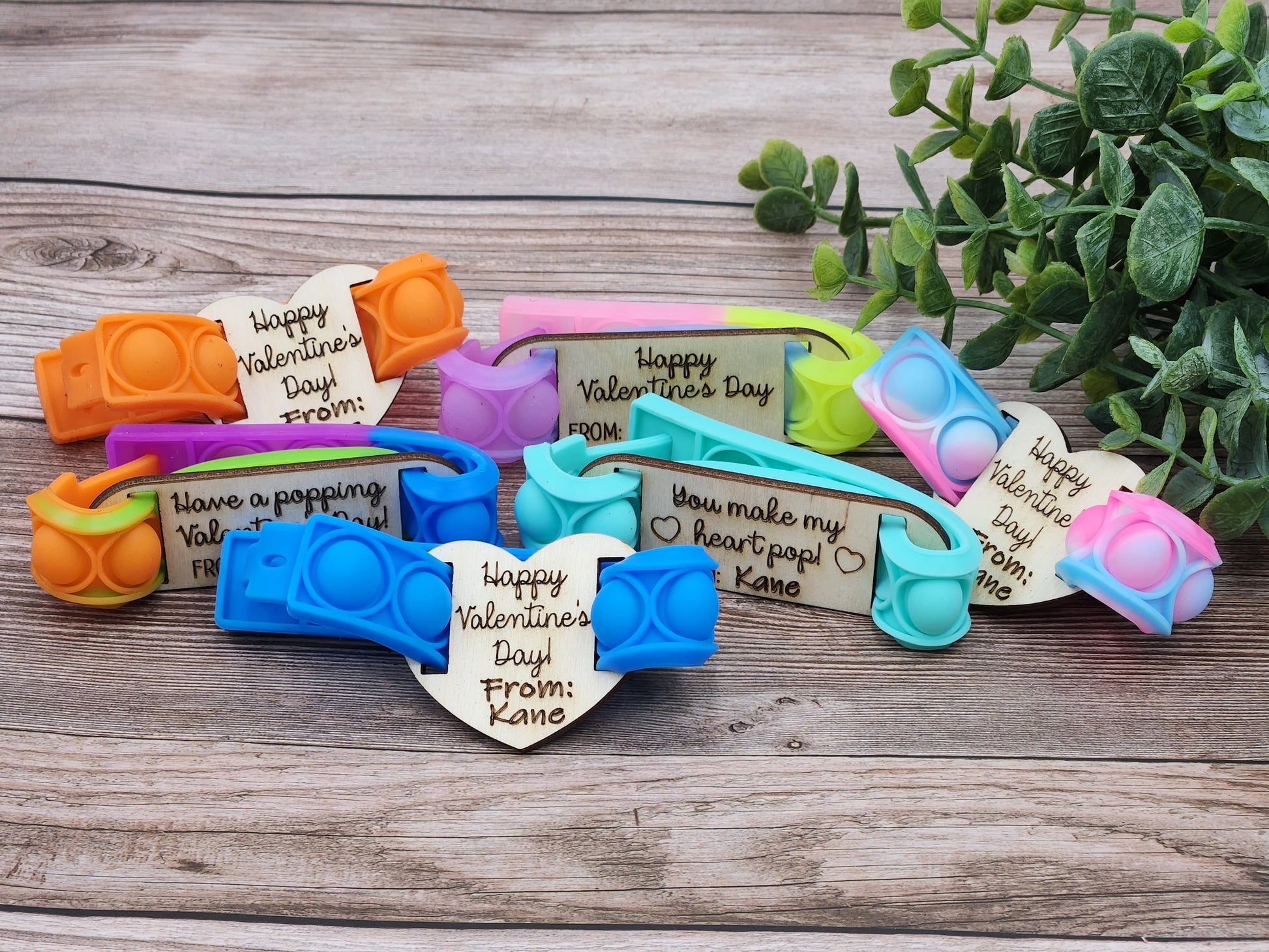 Grab something different for the kids class this year for Valentine's Day. These bracelet holders can be customized with your child's name. Option is available to include the bracelet. Bracelet colors are random.