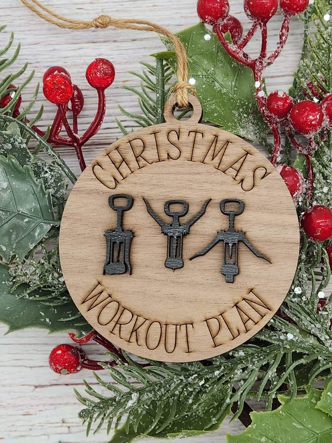 Bring some humor to your holiday season with this playful wooden ornament. Perfect for fitness enthusiasts or anyone with a good sense of humor, this ornament is a fun addition to your Christmas tree and makes a great gift.